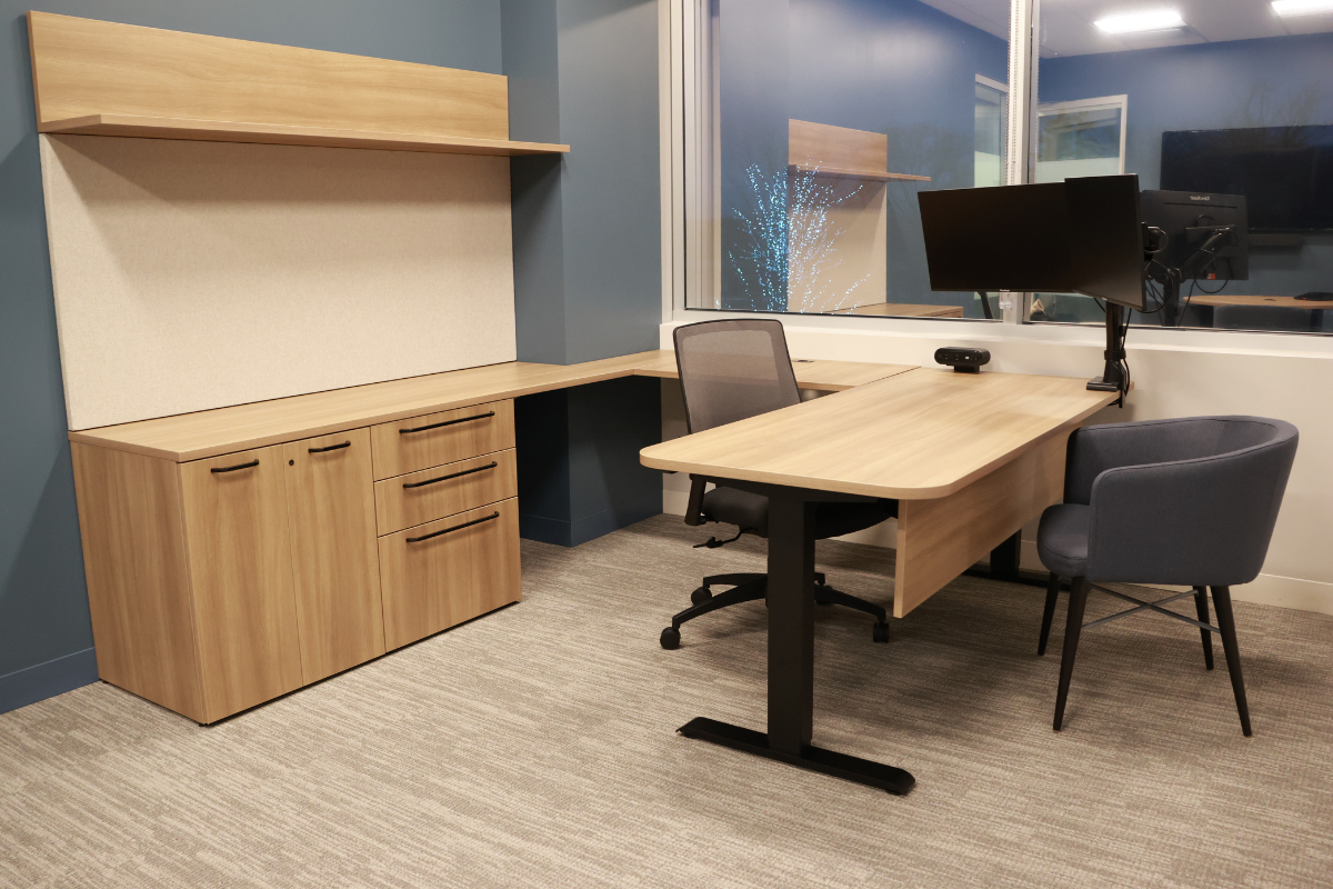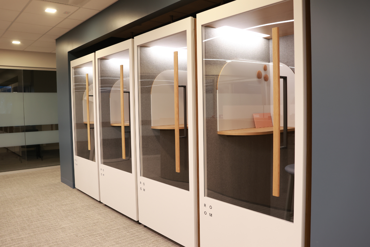 Working in partnership with Vocon and OFS, the project centered on creating a modern workplace that balances focused work, collaboration, and moments of retreat throughout the day.