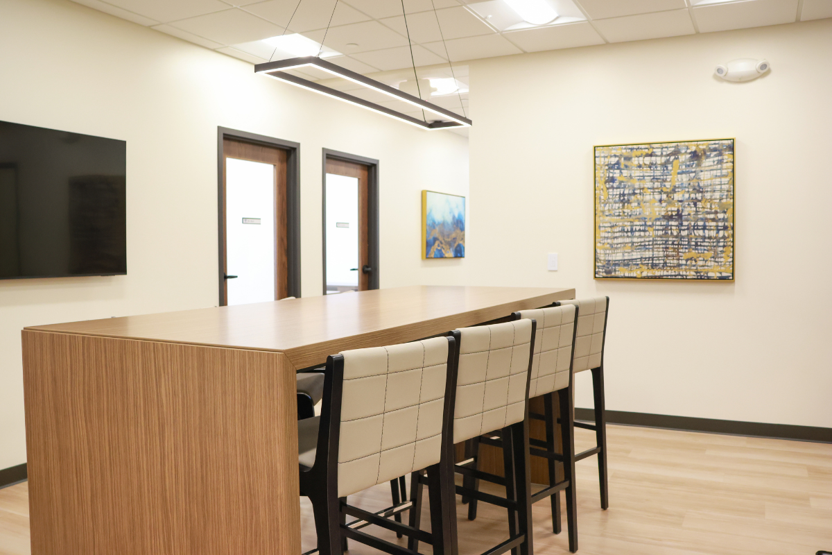 The first-floor work focused on a full refresh, prioritizing aesthetic updates such as carpet installations, finishes, and ceiling tiles. Mid-project, the scope expanded to include furniture for eleven additional private offices to meet the team’s continued growth.